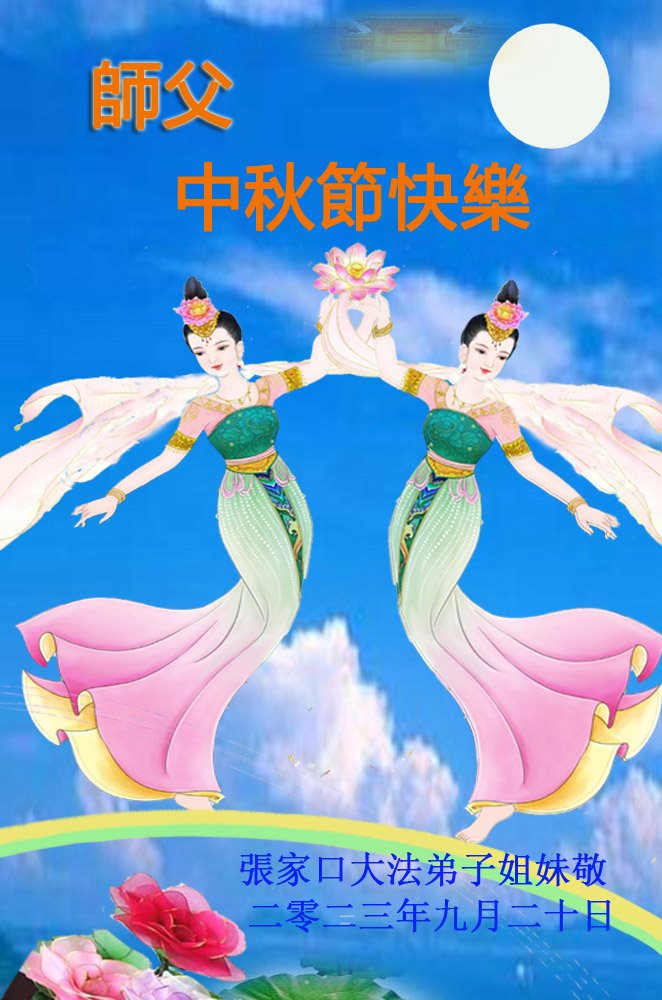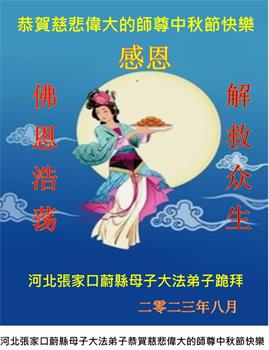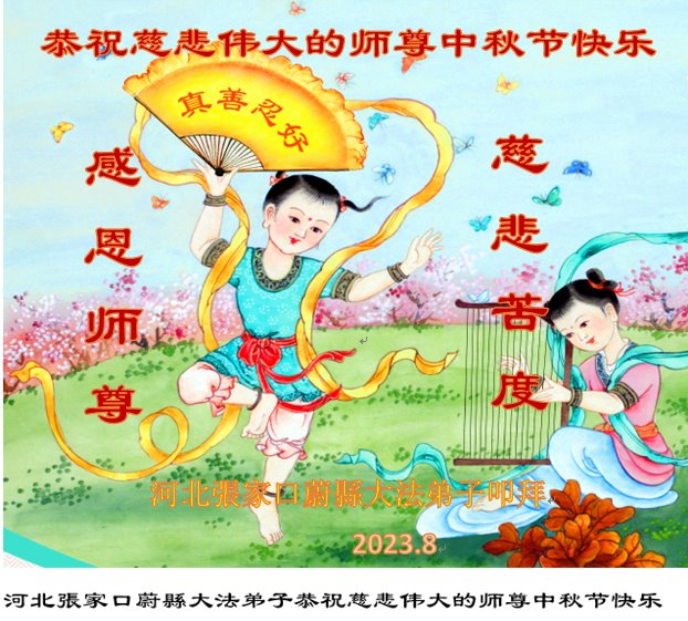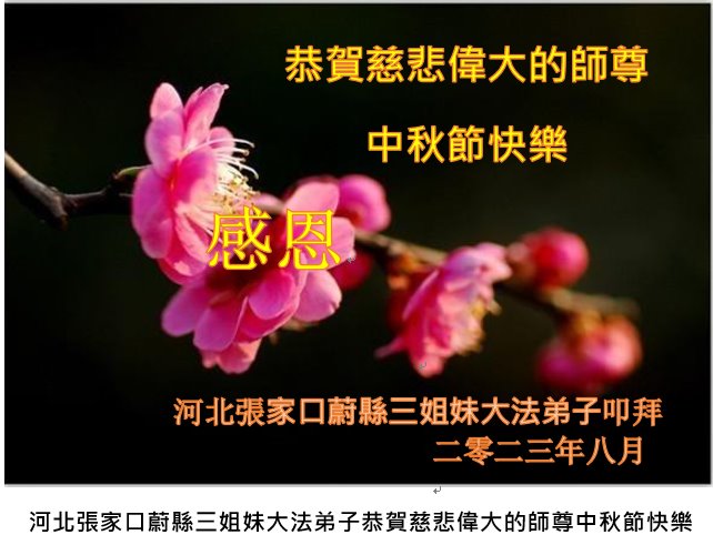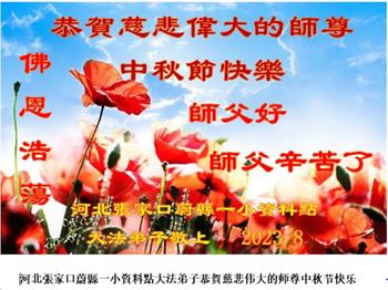 【明慧网二零二三年九月二十九日】 河北张家口赤城县一学法小组大法弟子恭祝师尊中秋节快乐!