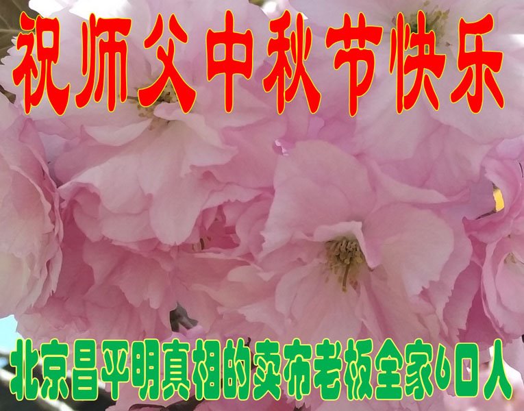 【明慧网二零二三年九月二十九日】 北京昌平明真相的卖布老板全家6口人恭祝师父中秋节快乐!
