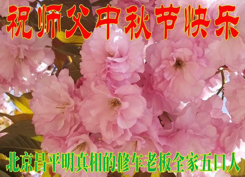 山东潍坊临朐大法弟子代表明真相的儿子,儿媳和刚出生的小孙女恭祝慈悲伟大的师尊中秋快乐! 北京昌平一明真相商人恭祝师父中秋节快乐!