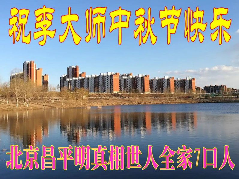 北京昌平明真相世人全家7口人祝李大师中秋节快乐!