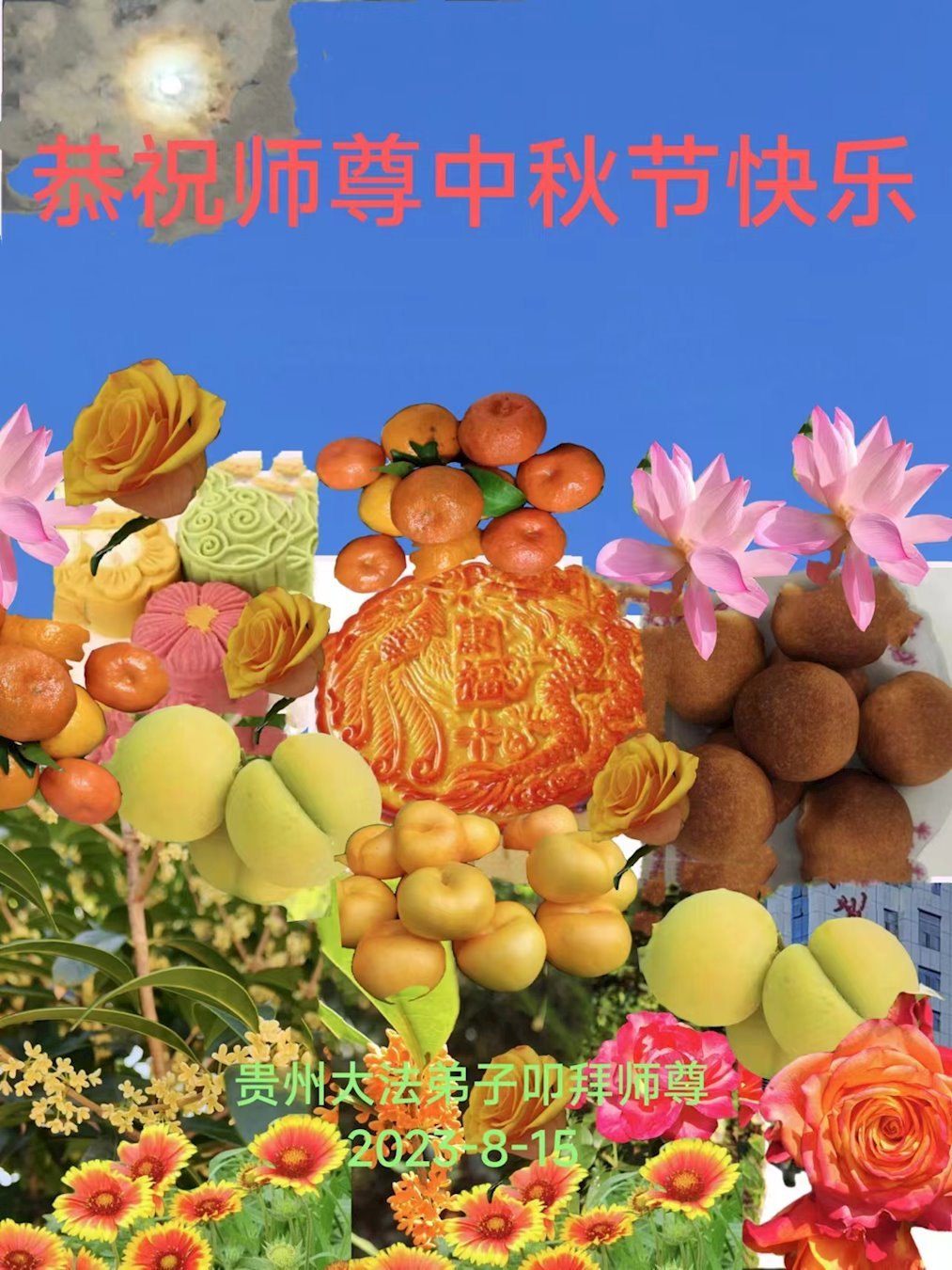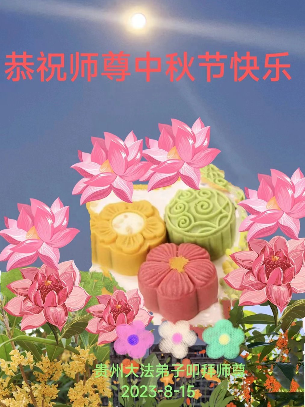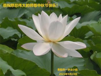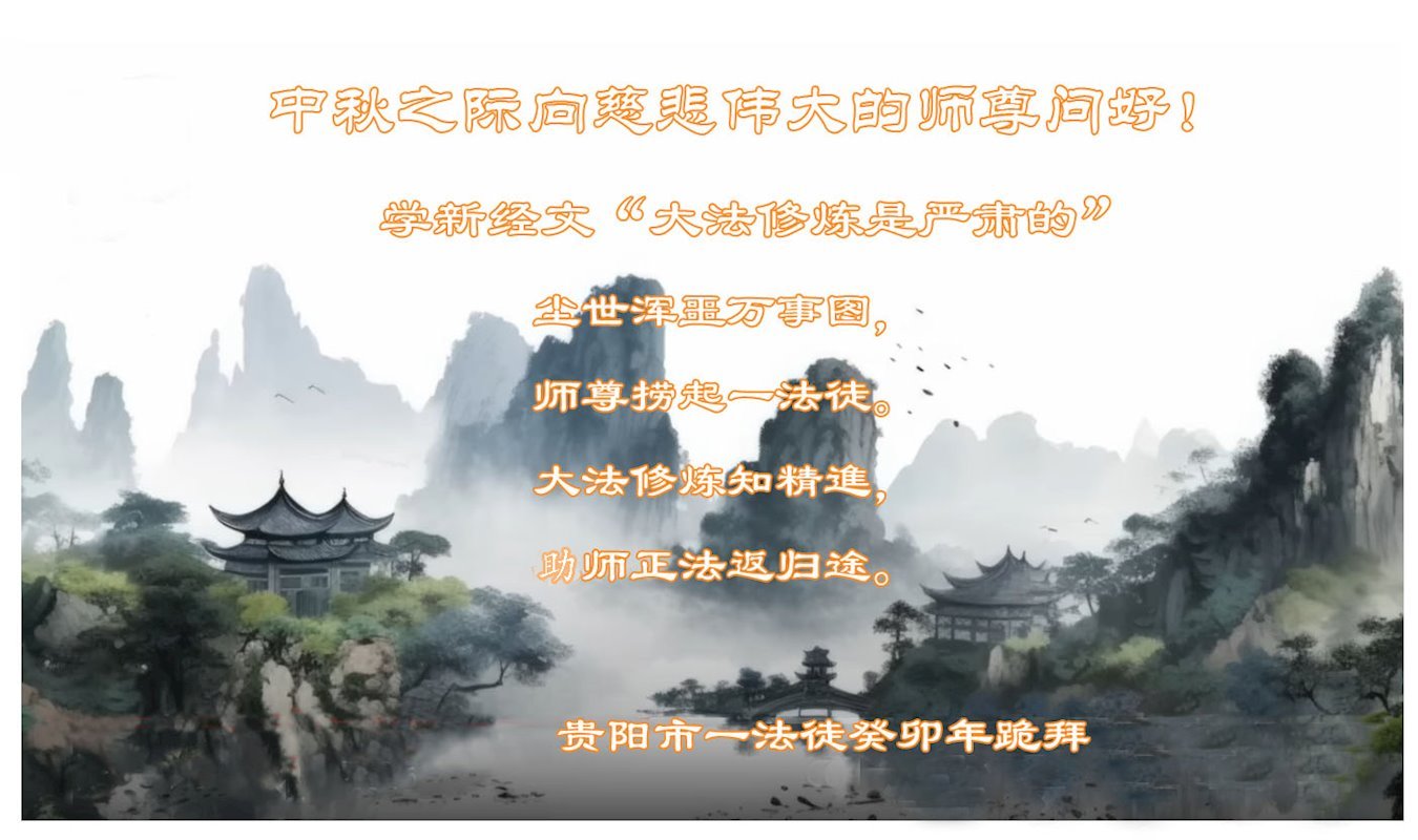 【明慧网二零二三年九月二十九日】 贵州省安顺市大法弟子恭祝师父中秋节快乐!