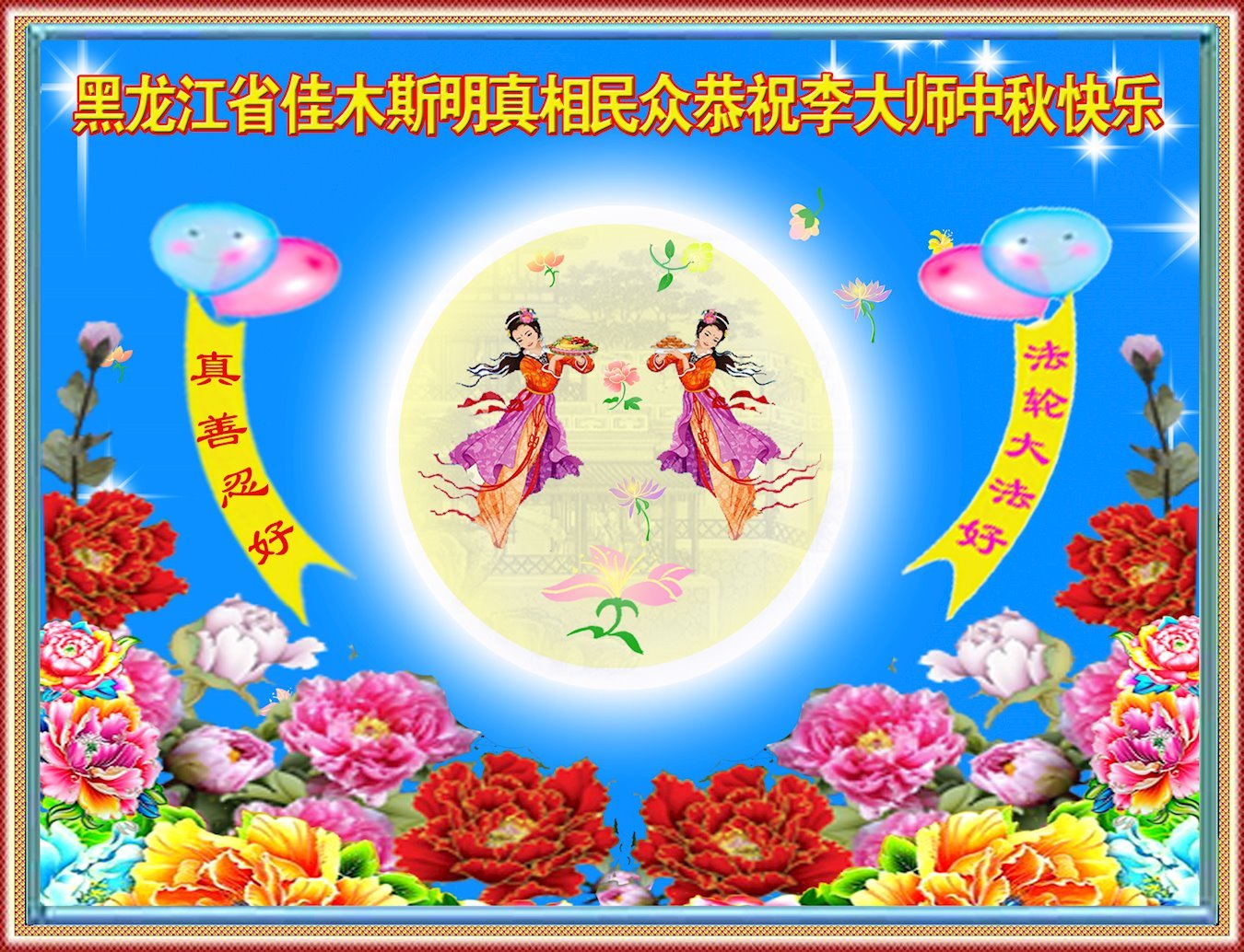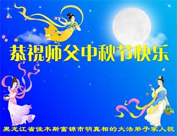 黑龙江省佳木斯地区明真相民众恭祝李大师中秋快乐!