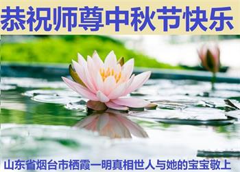 师父辛苦了!弟子感恩师父的救度之恩。在师父的安排下,在同修们的帮助下,我又回到大法中,成为一个头脑清醒,能做好三件事的大法弟子,和同修们一起走在证实法的路上。请不明真相的人赶快明白过来,记住法轮大法好,得到大法的救度。弟子叩拜师父! 山东省青岛莱西市一名明真相的世人恭祝李大师中秋节快乐!