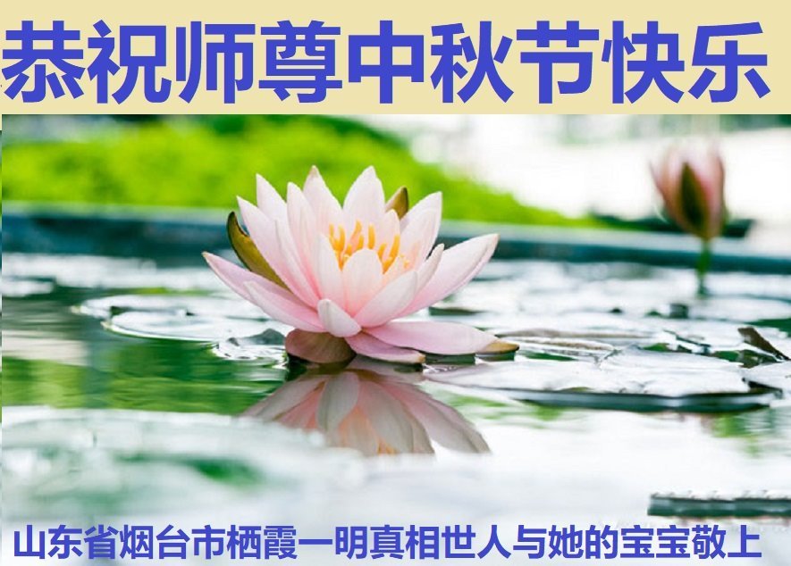 山东省烟台市栖霞市一明真相的世人和她的宝宝恭祝慈悲伟大的师尊中秋快乐! 黑龙江省佳木斯市汤原农场夫妻大法弟子恭祝师尊中秋快乐!