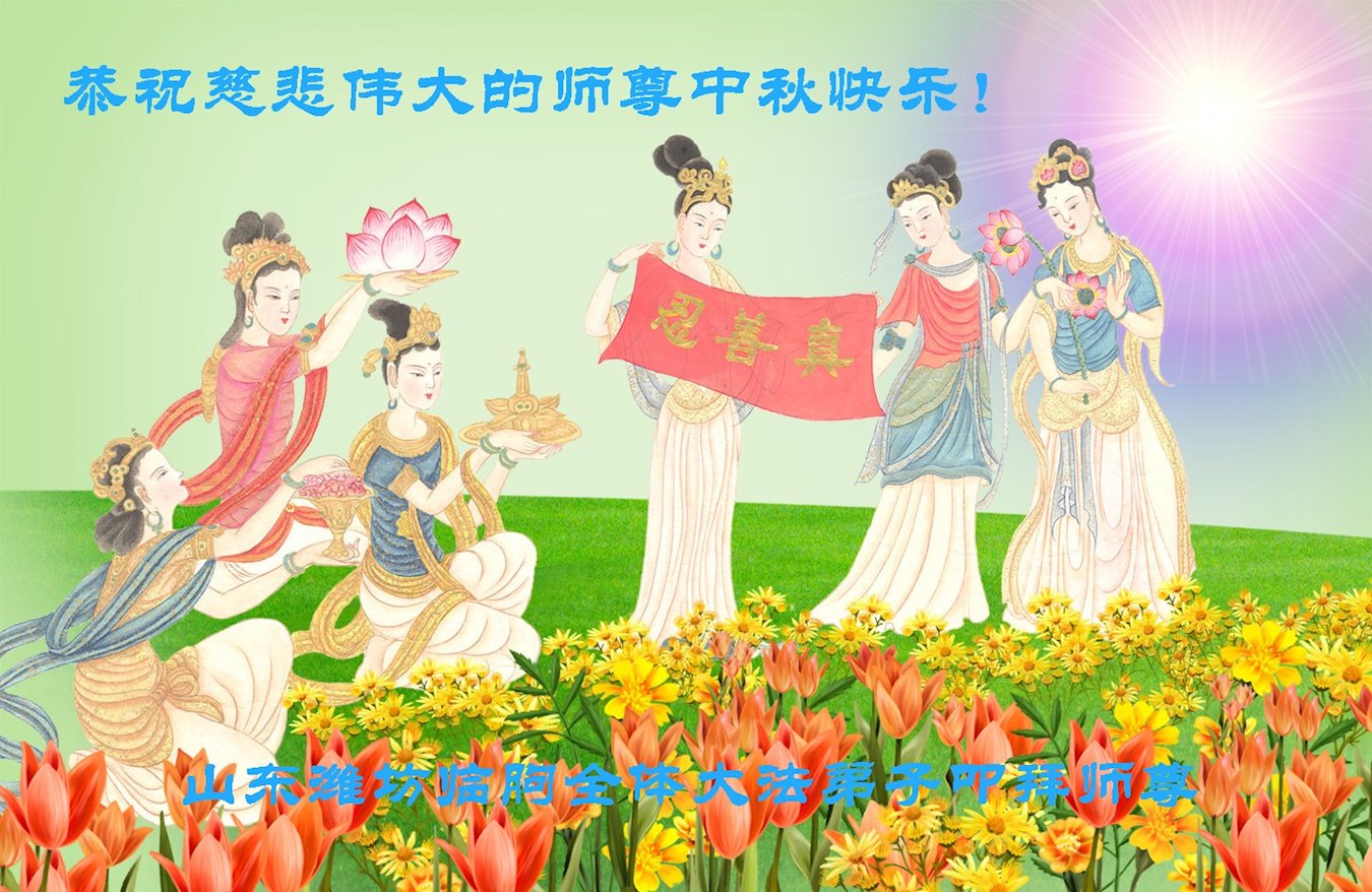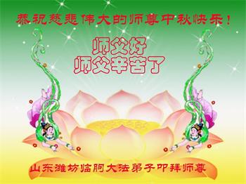师父辛苦了!弟子无法用语言表达对师父的感恩,只有精進实修,助师正法,救度众生,完成使命,跟师父回归美好的家园。 山东省潍坊市寒亭区大法弟子恭祝师尊中秋节快乐!