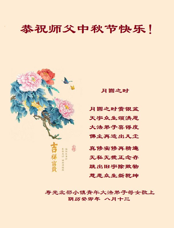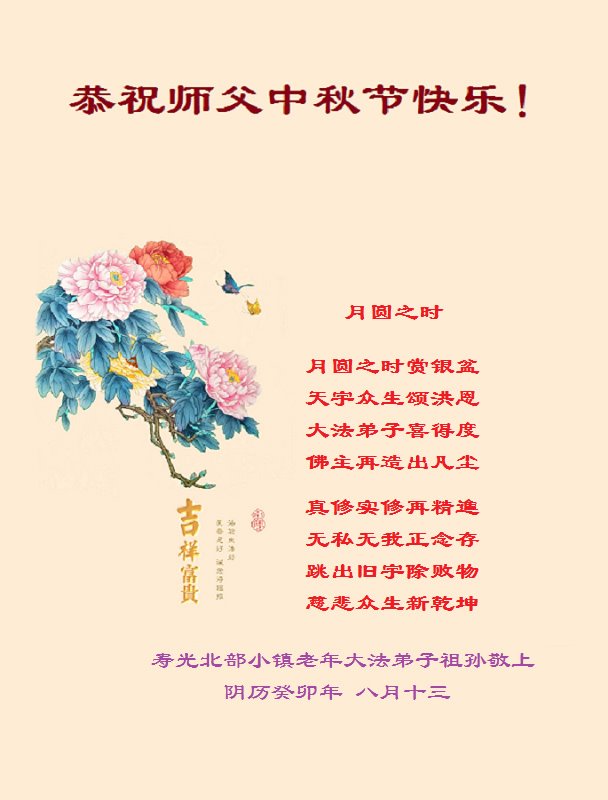 山东潍坊临朐一夫妻同修恭祝师尊中秋快乐!