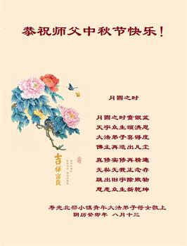 山东省潍坊青州大法弟子及全家恭祝慈悲伟大的师尊中秋快乐!