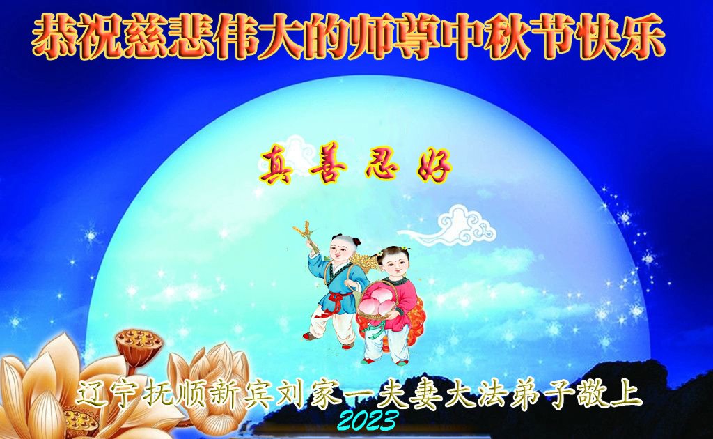 辽宁抚顺新宾刘家一夫妻大法弟子恭祝慈悲伟大的师尊中秋节快乐!