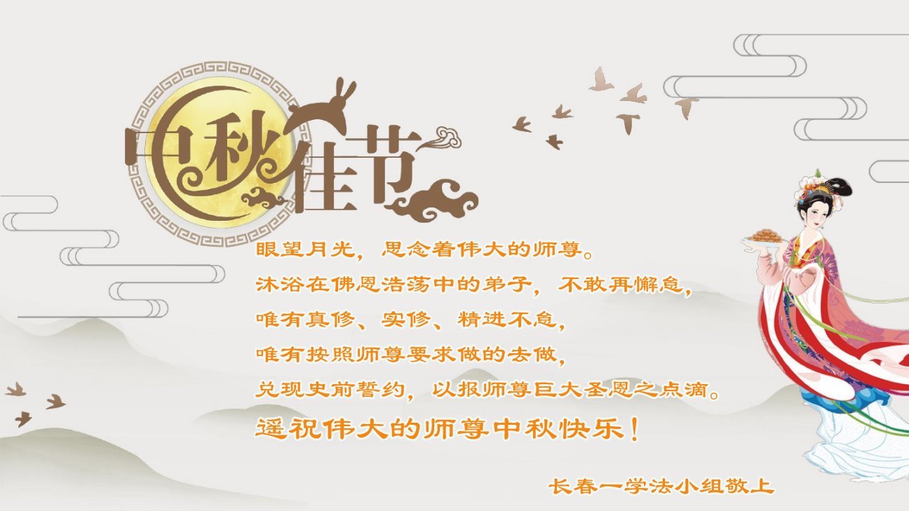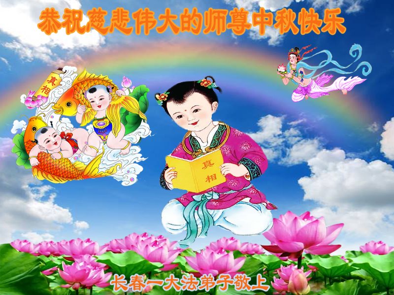 感恩慈悲伟大师尊的慈悲救度!恭祝师尊中秋节日快乐!弟子们一定学好法,真修、实修,做好三件事。 吉林省长春一大法弟子恭祝慈悲伟大的师尊中秋快乐!