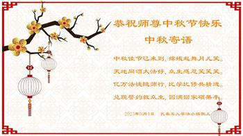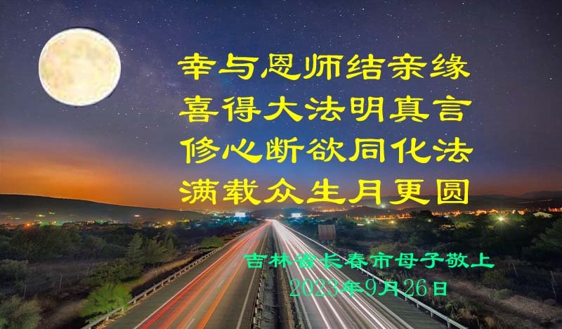 【明慧网二零二三年九月二十九日】 吉林长春一大法弟子恭祝师尊中秋节快乐!