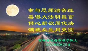 吉林长春一学法小组大法弟子恭祝师尊中秋节快乐!