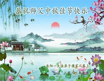 湖南岳阳一大法弟子携家人恭祝师父中秋佳节快乐!