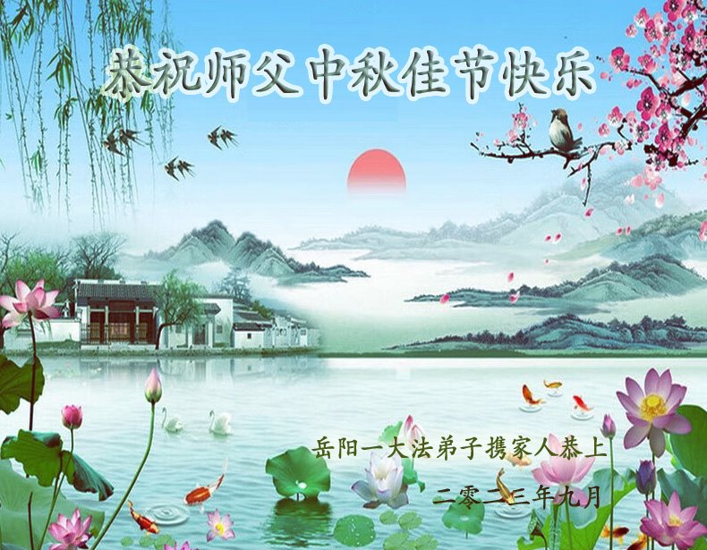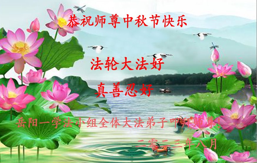 师父您好!辛苦了!谢谢您的慈悲苦度!法轮大法好!真善忍好!我们诚心恭祝师父中秋佳节快乐! 岳阳一学法小组全体大法弟子恭祝师尊中秋节快乐!叩拜师尊!