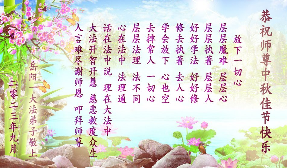 感谢恩师救度之恩!我一定做好三件事,跟师尊回家。恭祝师尊中秋佳节快乐! 岳阳一大法弟子恭祝师尊中秋佳节快乐!