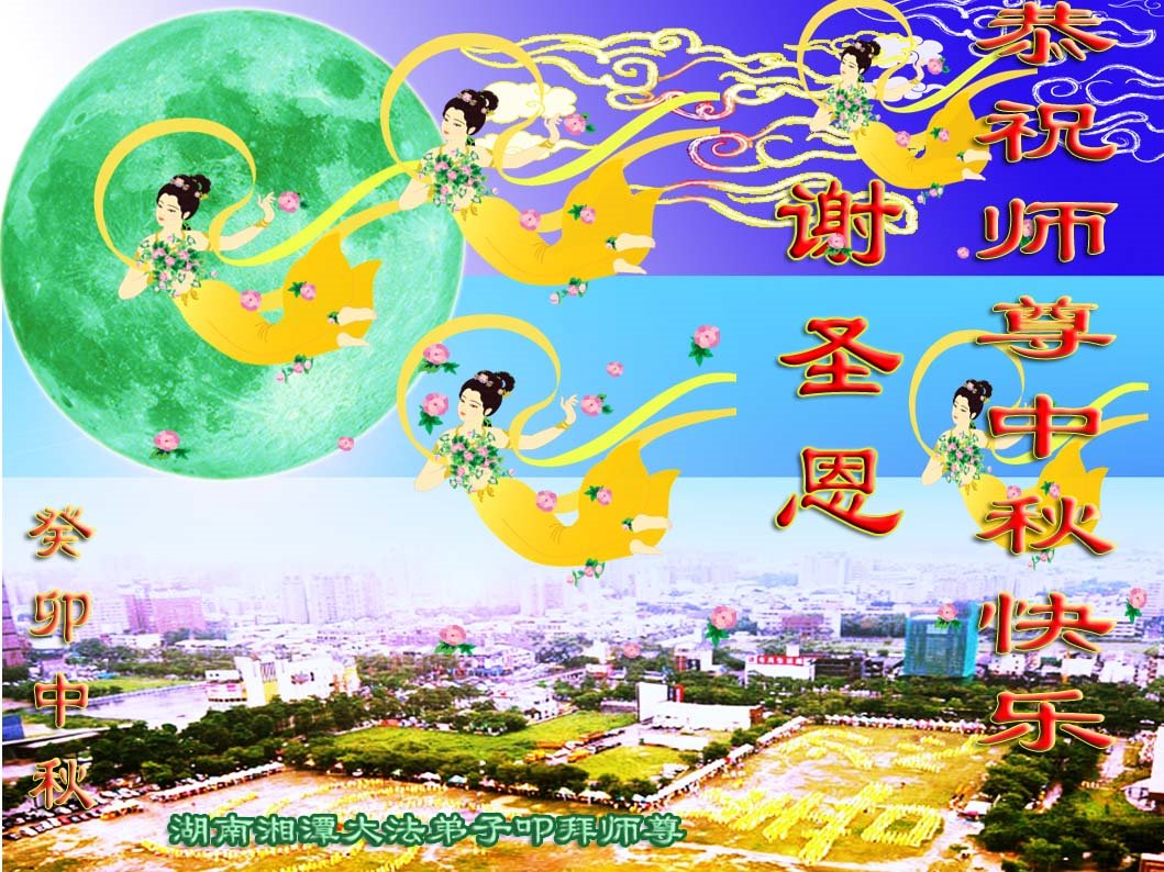 湖南湘潭学小组大法弟子恭祝师尊中秋快乐! 叩首 湖南湘潭大法弟子恭祝师尊中秋快乐!