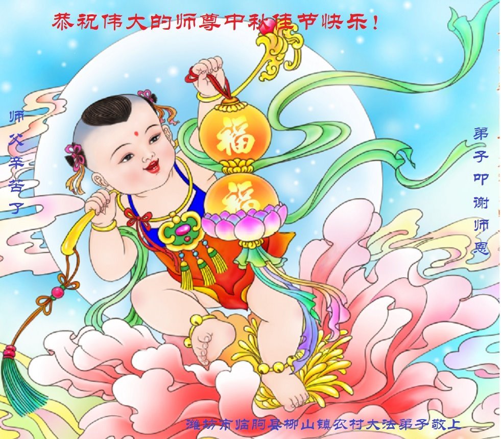 今见中秋月又圆 仍不见师把家还 只因弟子凡心重 拖累师尊忙不完 弟子在此三叩首 恳请师尊赐机缘 精進正悟法中修 正念正行救众生 值此中秋佳节之际,河北省唐山市迁安农村大法弟子恭祝师尊中秋节快乐! 在今后的日子里弟子们一定努力精進,正念正行,去掉各种人心,人念,人情,修好自己多救人。 山东省潍坊市临朐县柳山镇农村大法弟子中秋恭祝伟大的师尊中秋佳节快乐!