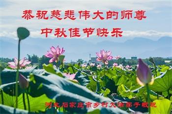 中国大陆白洋淀地区大法弟子敬祝师父中秋节愉快!感恩师父慈悲救度!我们一定遵从师父教诲,修好自己,随师正法救度众生。 河北保定地区书画界大法弟子恭祝师父中秋节快乐!请师父放心,我们一定紧跟师父的正法進程,学好法,炼好功,正念正行助师正法。 河北省容城县大法弟子恭祝师尊中秋节快乐!师父您辛苦了!我们一定修好自己,抓紧救度众生。 河北省容城县农村学法小组大法弟子恭祝师父中秋节快乐! 河北省张家口市万全区农村大法弟子恭祝师尊八月十五中秋节快乐!