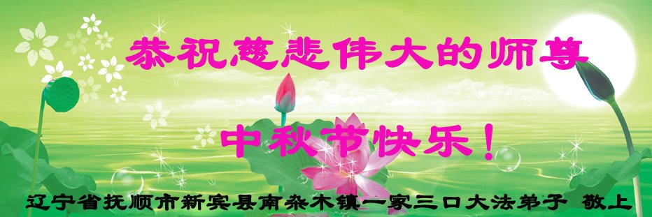 辽宁省抚顺市大法弟子全家敬上 辽宁省熊岳大法弟子恭祝师尊中秋快乐!