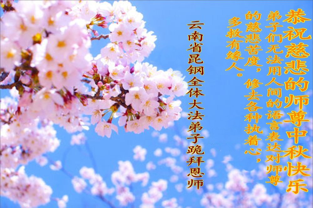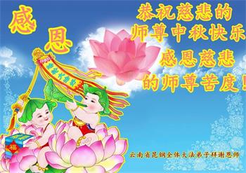 云南省昆钢全体大法弟子恭祝慈悲的师尊中秋快乐!感恩慈悲的师尊苦度! 云南省红河州弥勒市大法弟子恭祝师尊中秋快乐!