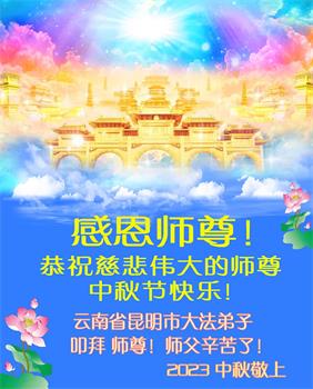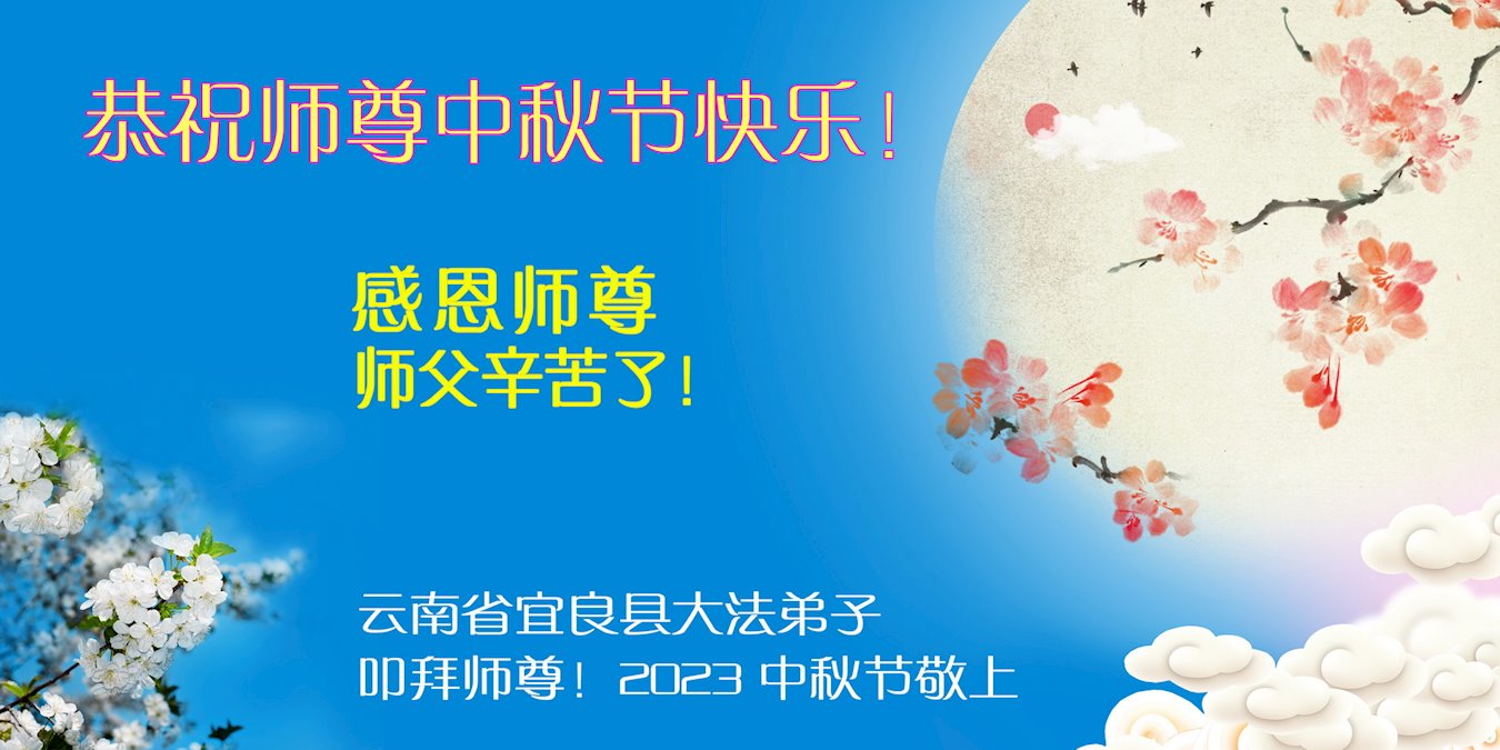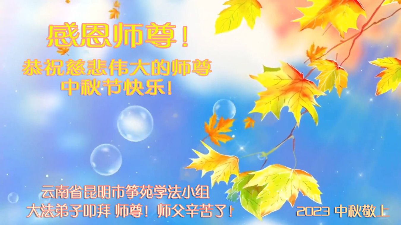 【明慧网二零二三年九月二十九日】 云南省昆钢全体大法弟子恭祝慈悲的师尊中秋节快乐!