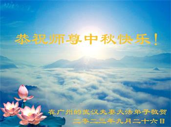 师父您好!师父辛苦了!感恩师父! 在广州的湖北省武汉夫妻大法弟子恭祝师尊中秋快乐!