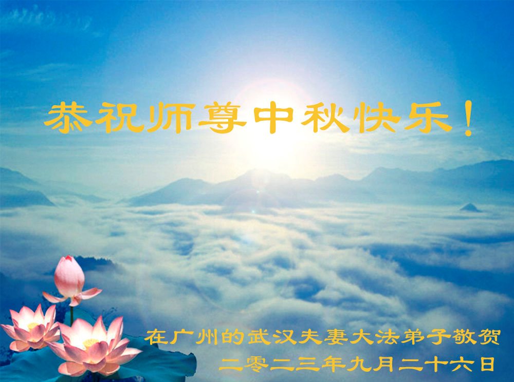 谢谢师尊的慈悲苦度!弟子唯有精進,做好三件事,以报师尊浩荡佛恩! 在广州的武汉夫妻大法弟子敬贺 二零二三年九月二十六日 湖北襄阳大法弟子恭祝师父中秋节快乐!