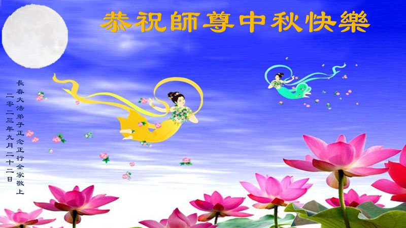 【明慧网二零二三年九月二十九日】 吉林省长春新生背法小组大法弟子恭祝师尊中秋快乐!感恩师尊的慈悲救度!
