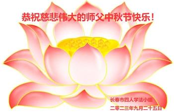 长春市四人学法小组大法弟子叩拜 二零二三年九月二十五日 吉林省长春市榆树市大法弟子及女儿恭祝慈悲伟大的师尊中秋快乐!