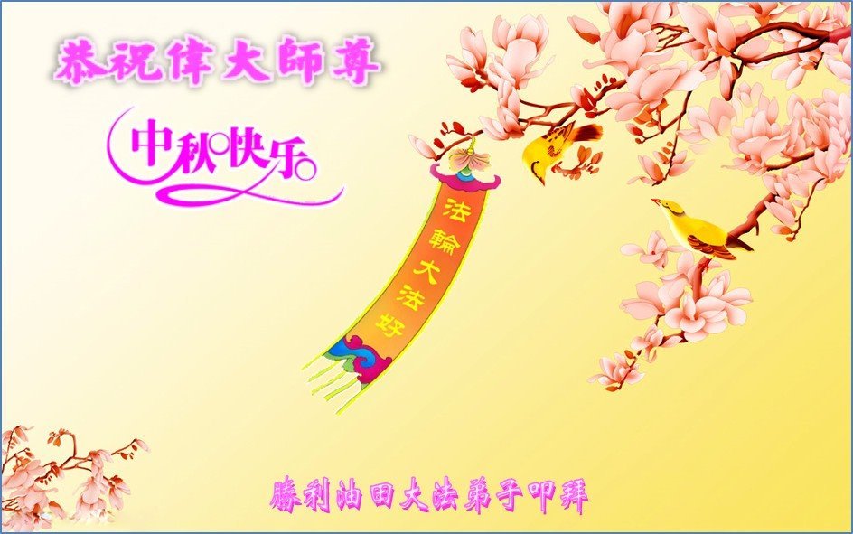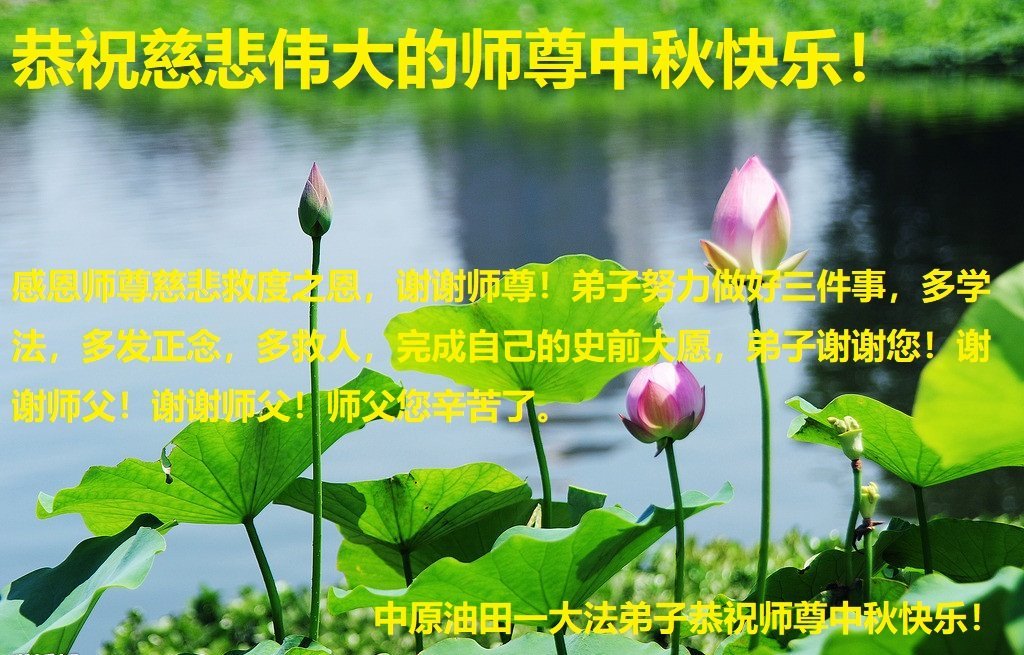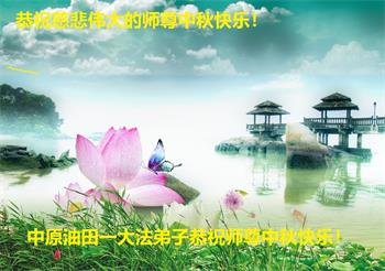 恭祝慈悲伟大的师尊中秋快乐!历经数不尽的艰苦岁月得来的给予弟子们的圣缘。弟子虽没有面见过慈悲伟大的师父神圣的容颜,可是弟子能时时知道师父就在弟子身边慈悲的看护着弟子、保护着弟子。弟子感恩师父的慈悲苦度!弟子努力做好三件事,多学法,多发正念,多救人,完成自己的史前大愿,感恩师尊慈悲救度之恩,谢谢师尊! 河南中原油田一大法弟子恭祝师尊中秋快乐!