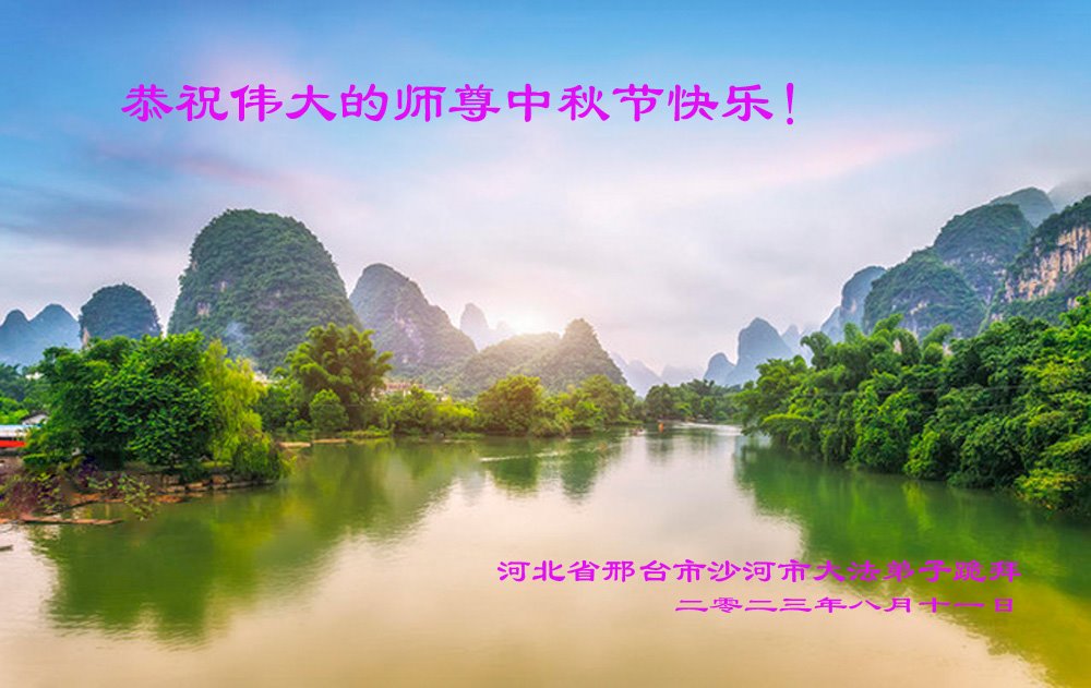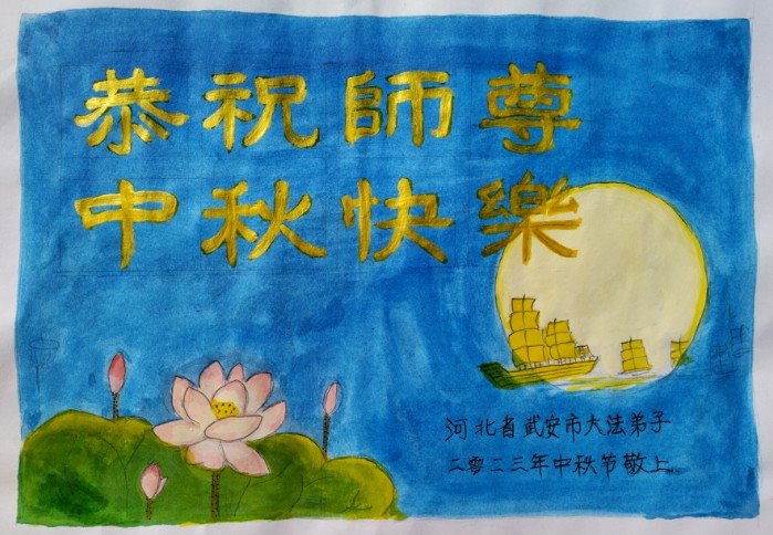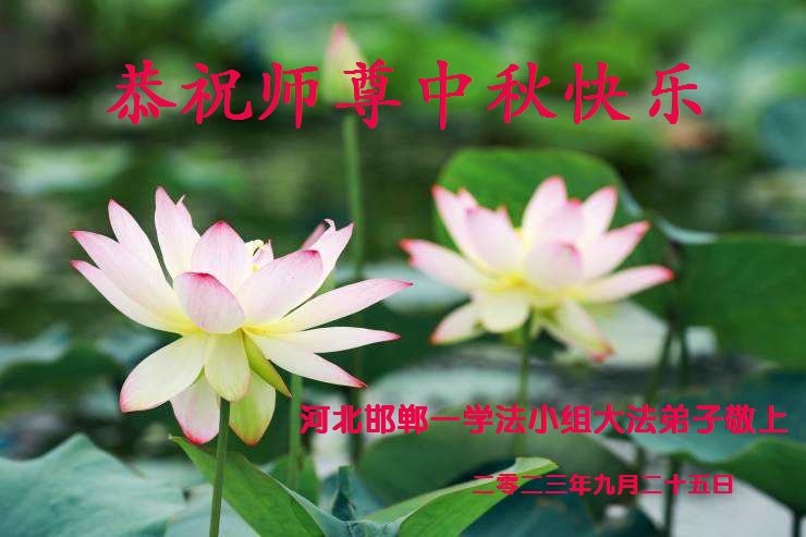 【明慧网二零二三年九月二十九日】 河北邯郸一学法小组大法弟子恭祝师父中秋快乐!