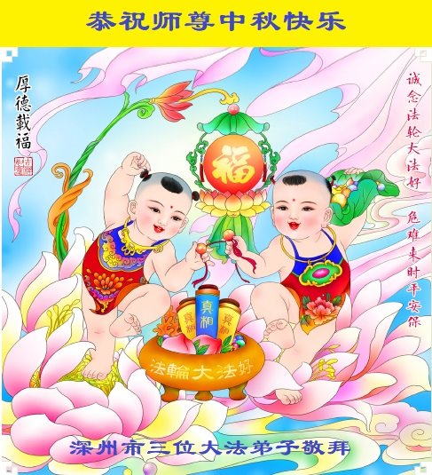 师父您好:弟子感恩师父的慈悲救度。师父您辛苦了! 弟子叩拜师父! 2023年9月26日 河北省衡水市深州市三名大法弟子恭祝师尊中秋快乐!