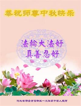 弟子们能得到师父的救度,沐浴师父的洪恩,无以报答!只有做好三件事,多救人,以报师恩。 河北省沧州市泊头市一大法弟子恭祝师父中秋快乐!