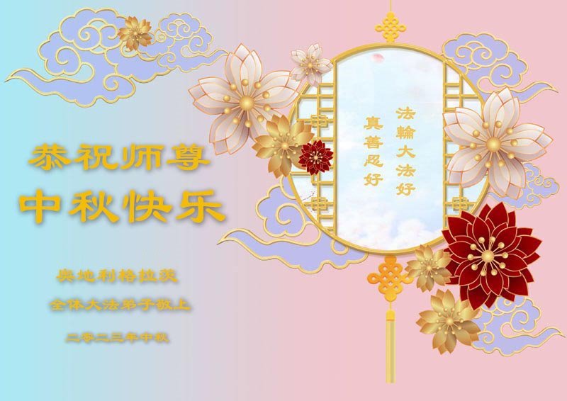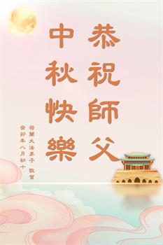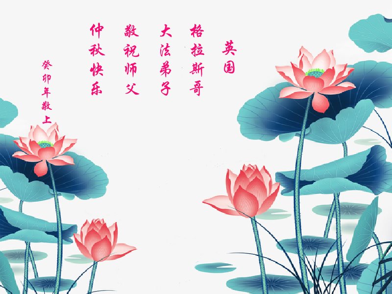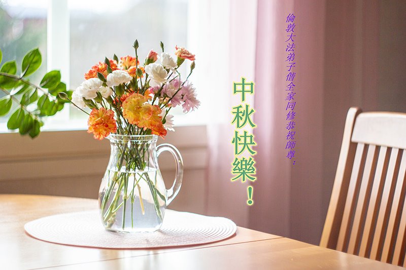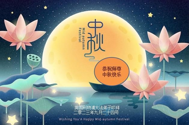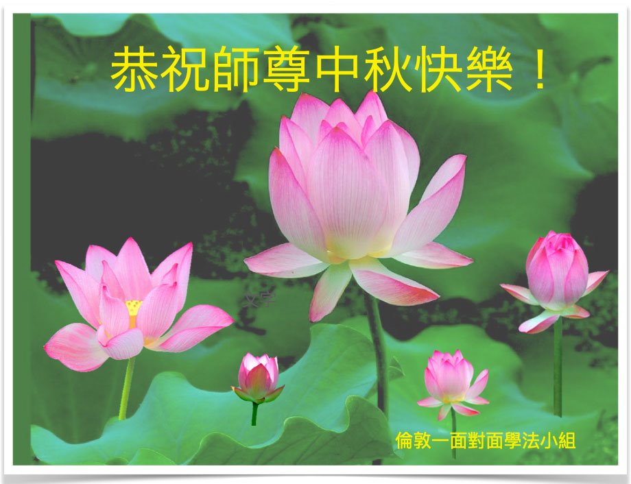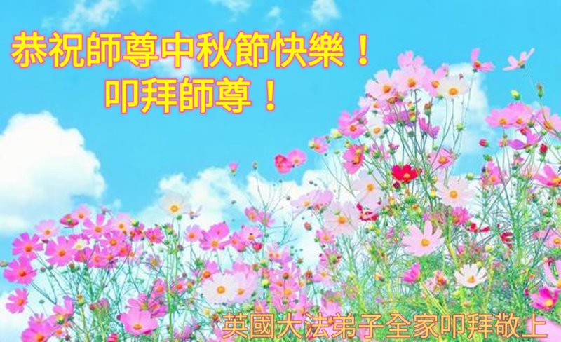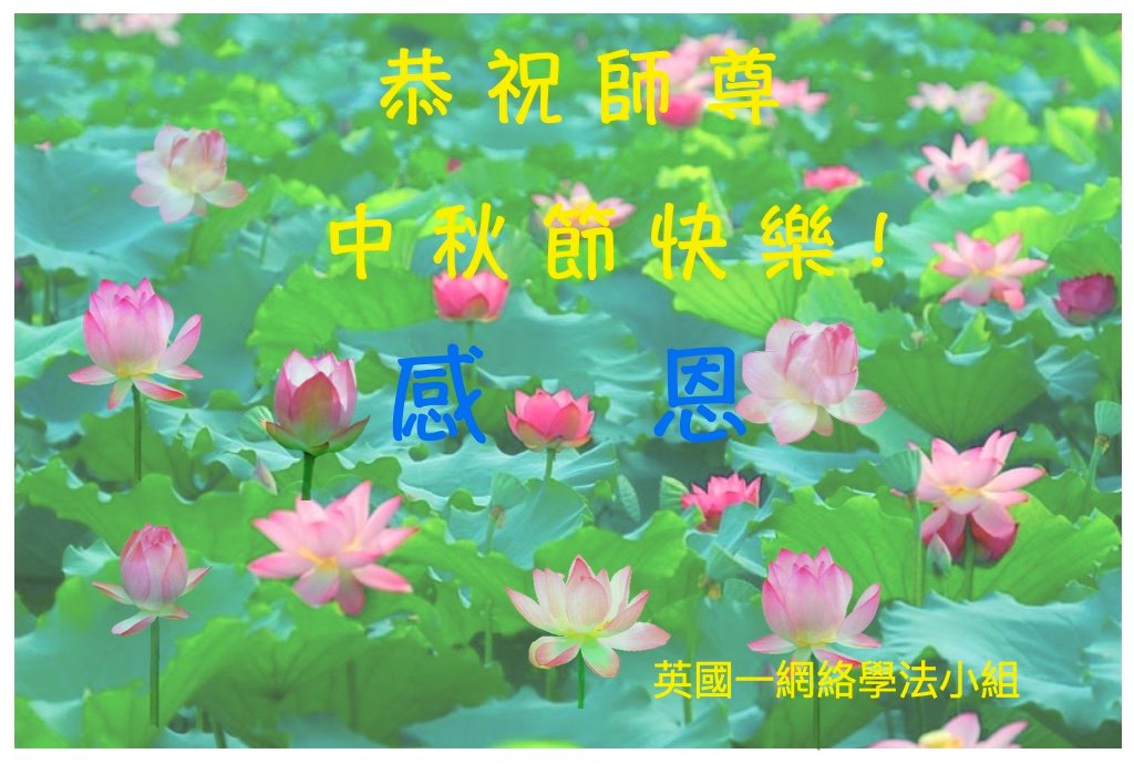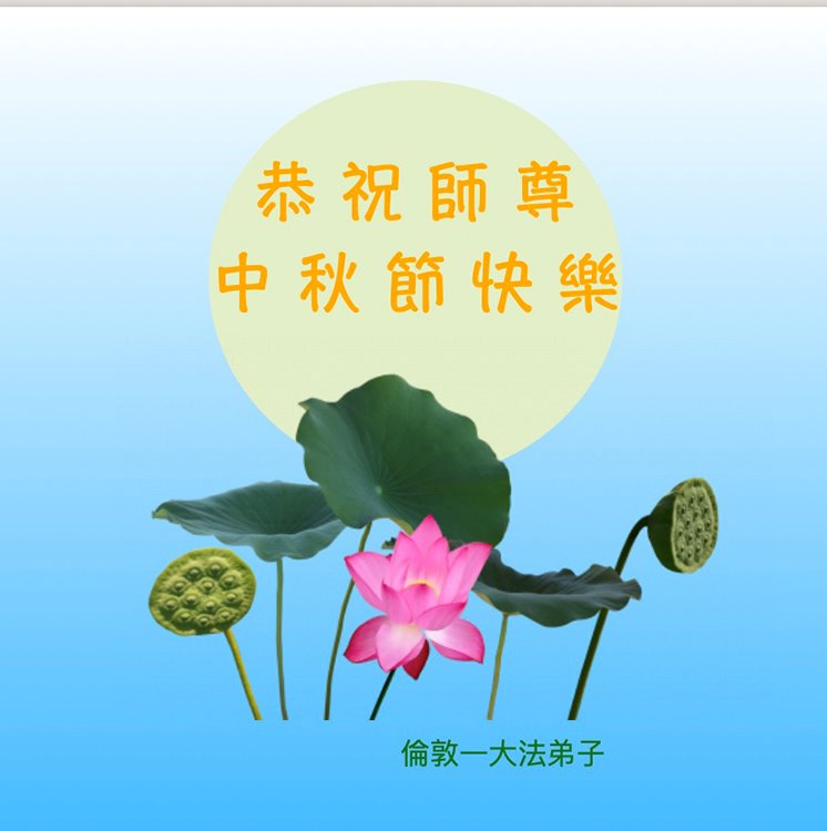 法轮大法好! 真善忍好!师尊辛苦了!谢谢师尊! 英国一学法小组大法弟子恭祝师尊中秋节快乐!