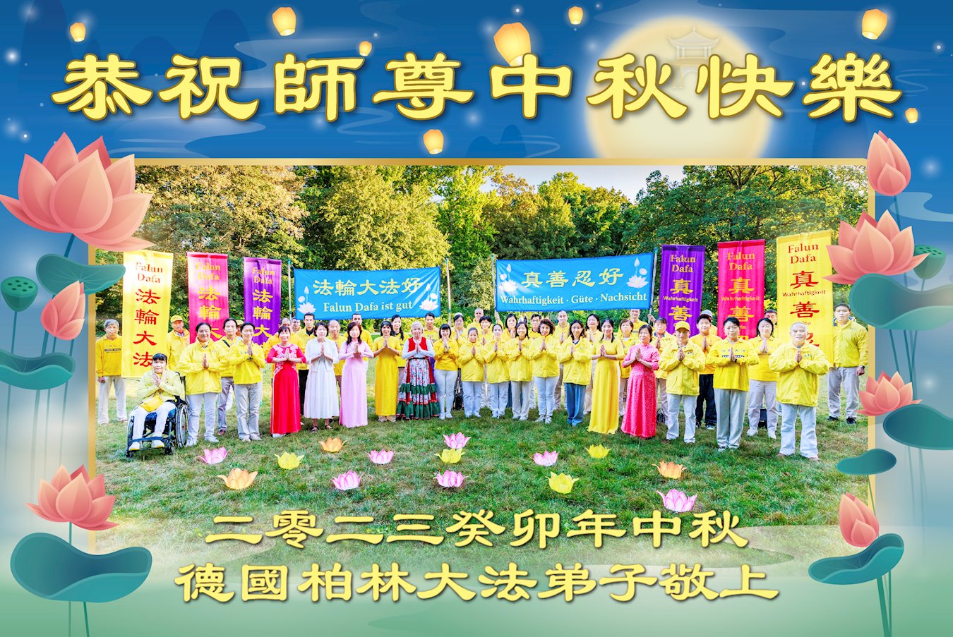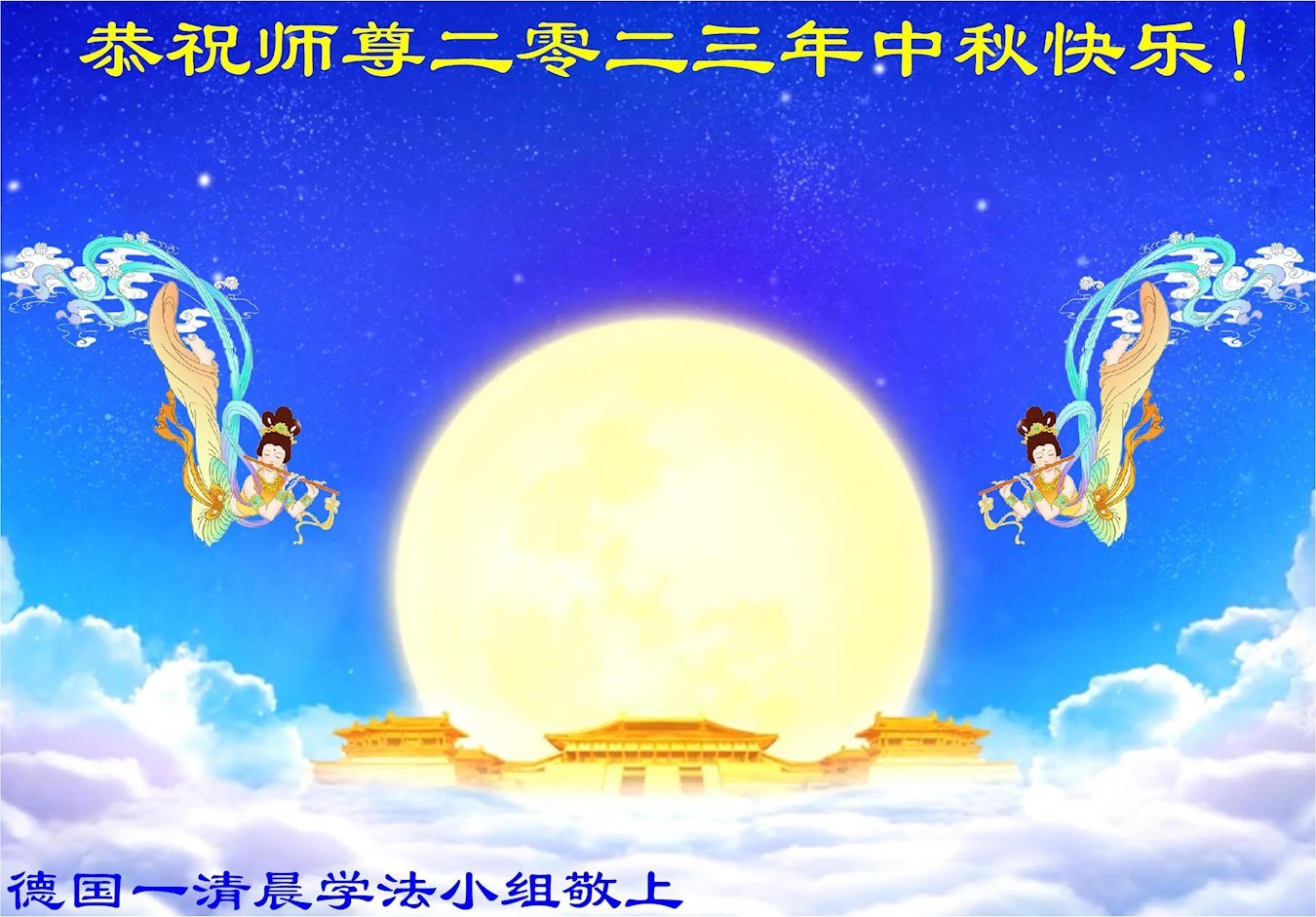 【明慧网二零二三年九月二十九日】二零二三年中秋佳节来临之际,英国、德国、法国、爱尔兰、荷兰、奥地利大法弟子恭祝师尊中秋快乐! 德国柏林大法弟子恭祝师尊中秋快乐!