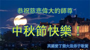 英国爱丁堡大法弟子恭祝慈悲伟大的师尊中秋快乐!