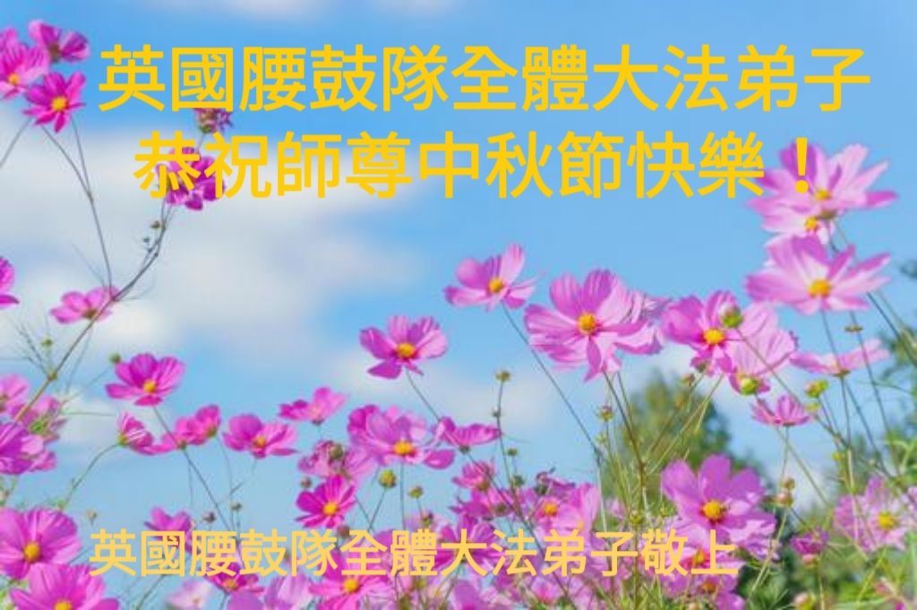 英国腰鼓队全体大法弟子恭祝慈悲伟大的师尊中秋节快乐!