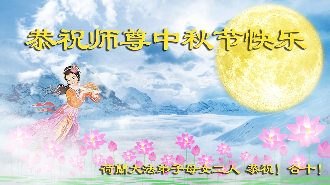 荷兰大法弟子母女二人恭祝师父中秋快乐!