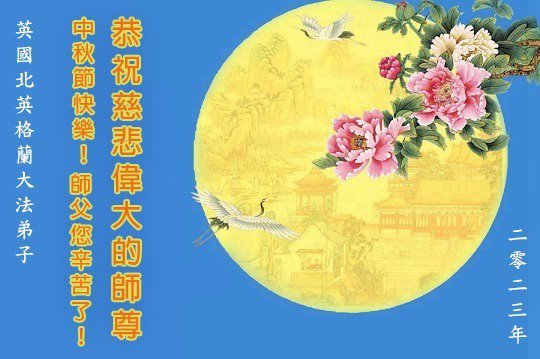 日复一日,年复一年,弟子们每一步的提高都离不开师父的慈悲加持与保护。是师父用巨大的承受换来了弟子们能跟随师父在正法中走到今天,是师父的洪大慈悲成就了弟子们在修炼中的悟道与收获。能成为正法时期大法弟子是弟子们的无上荣耀,千言万语也无法表达弟子们对师父的感恩。在2023年中秋节到来之际,弟子全家在法国遥祝慈悲伟大的师父中秋快乐!谢谢师父的慈悲苦度!法国一家五口大法弟子敬贺。 英国伦敦一面对面学法小组大法弟子恭祝师尊中秋节快乐!