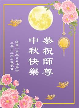 法国大法弟子恭祝慈悲伟大的师尊中秋快乐!