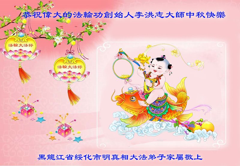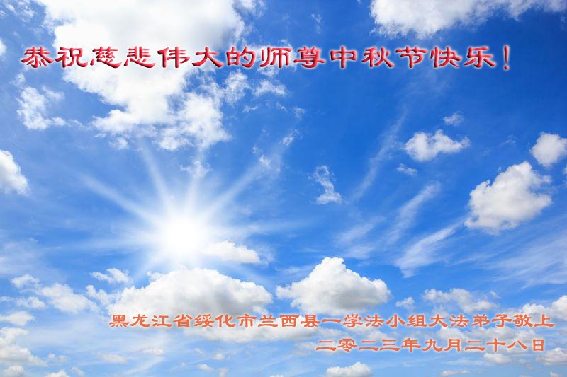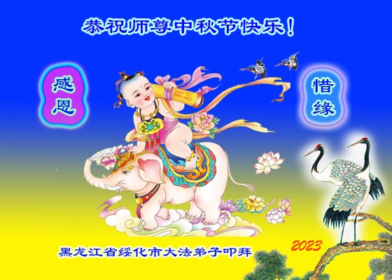 【明慧网二零二三年九月二十九日】 黑龙江省绥化市大法弟子及家人恭祝师尊中秋节快乐!