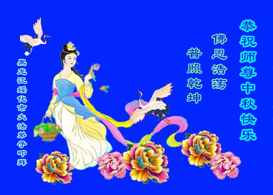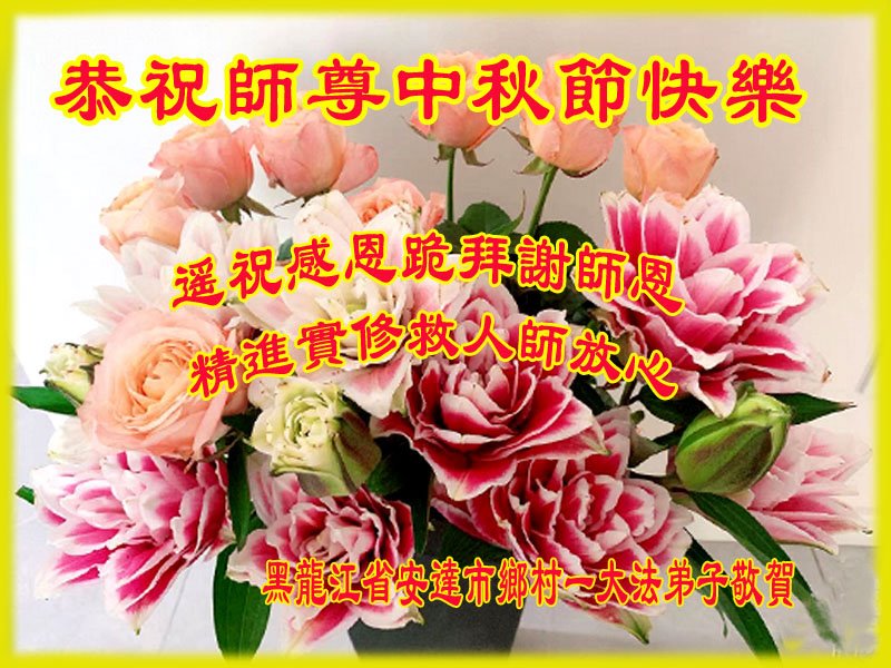 感恩师父慈悲救度!师父辛苦了!盼望早日在大陆师父和大陆弟子团聚,弟子叩拜师父! 黑龙江省双鸭山市集贤县大法弟子恭祝师尊中秋节快乐!