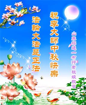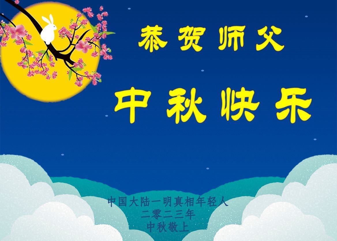 | 【明慧网二零二三年九月二十九日】(明慧网通讯员中国大陆综合报道)大法洪传救度苍宇,越来越多的中国民众明白了法轮大法好,从市民、警察、商人、学生,到各行各业的善良人,感谢法轮大法师父李洪志先生传法度人,挽救日益败坏的社会和道德。在中秋佳节来临之际,善良的中国百姓向李洪志大师表达他们的敬意。 山东省招远市一布行老板娘说:“久远年代,人间就有传说,盘古开天地,女娲造人,我相信这是真的。人就应该敬天敬地,积德行善才能得福报。我们家相信大法,按真、善、忍做好人,买卖兴隆,福报连连。” 黑龙江省哈尔滨市一明真相世人再给李洪志大师的中秋中说:“我们全家从九旬老人至五岁幼儿都受益于法轮大法的佛光洪恩,明白大法真相,经常诚念‘法轮大法好,真善忍好!’在这瘟疫蔓延、多灾多难的社会里,全家平安健康。” 北京石景山民众天天颂念“法轮大法好、真善忍好、李洪志大师好”