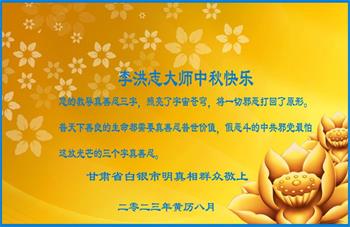 跪谢师尊的慈悲苦度,感恩师尊的巨大付出。 甘肃省白银市明真相群众恭祝李洪志大师中秋快乐!