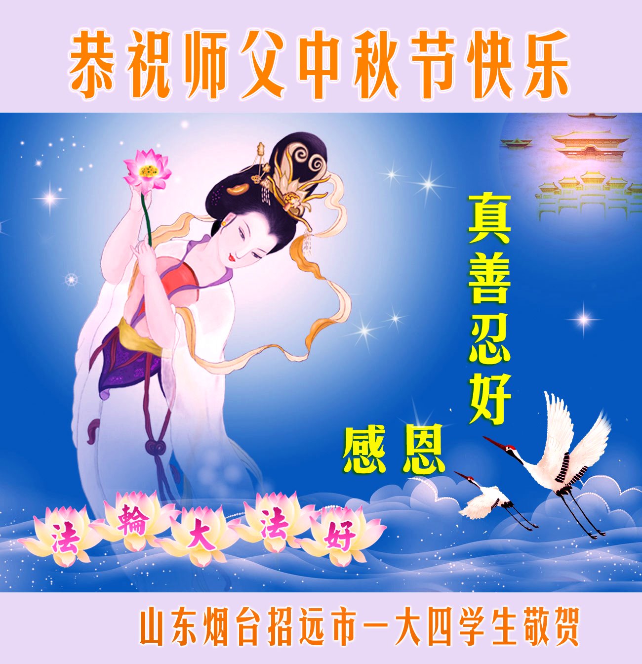 中国大陆一大法弟子家属恭祝李大师中秋节快乐!