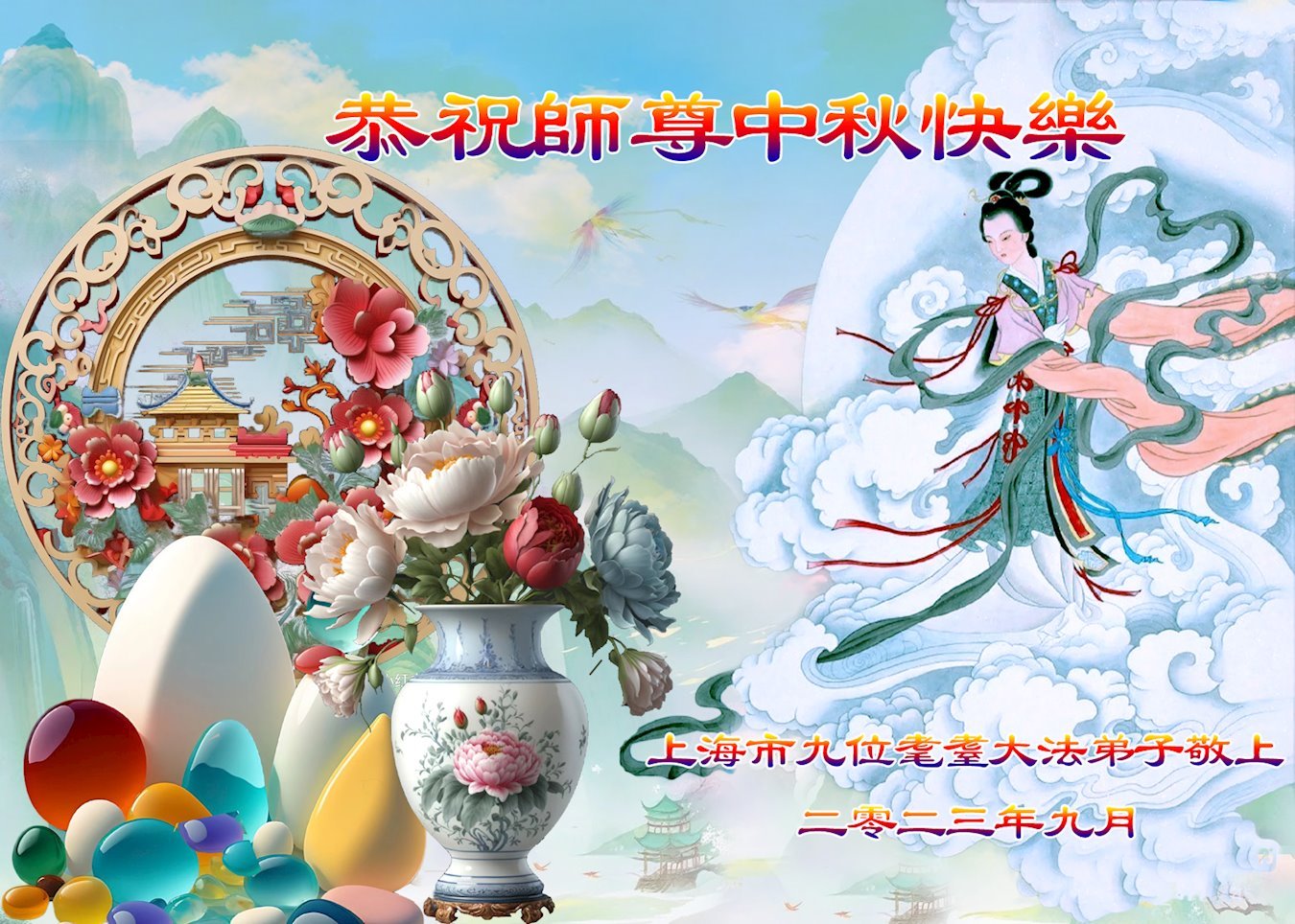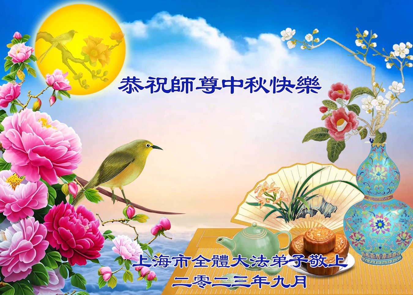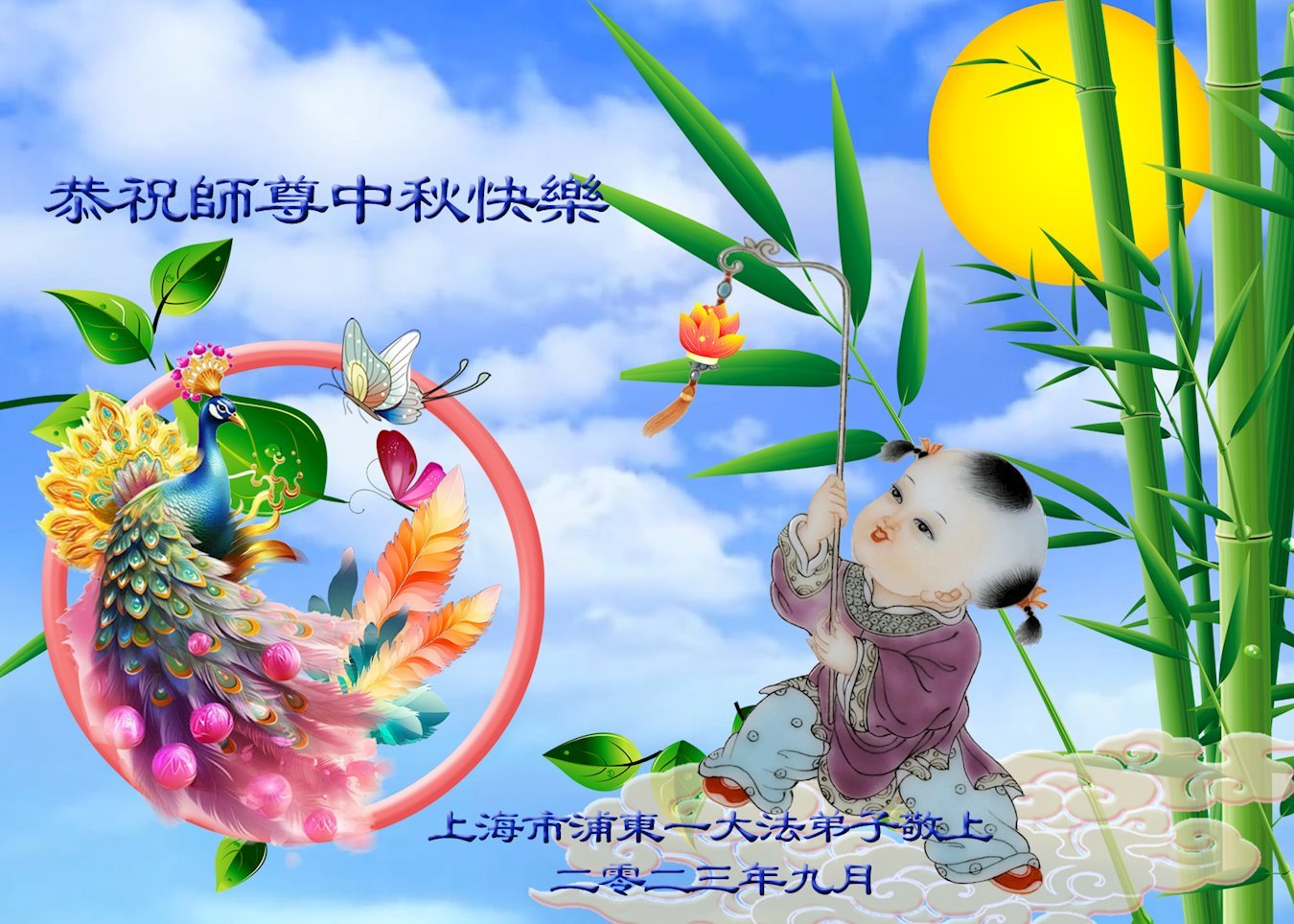 上海市南汇区一大法弟子敬上 二零二三年九月二十七日 上海市明白真相的全体市民感恩、恭祝李大师中秋节快乐!
