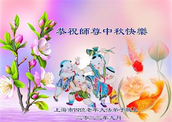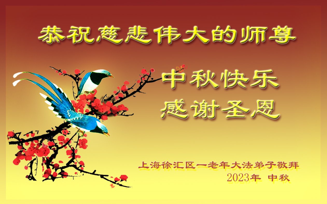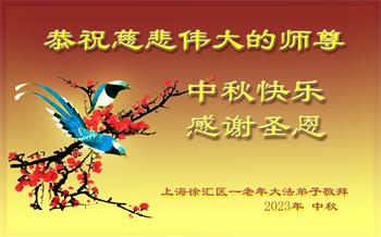 【明慧网二零二三年九月二十九日】 上海徐汇区一老年大法弟子敬拜师尊中秋节快乐!