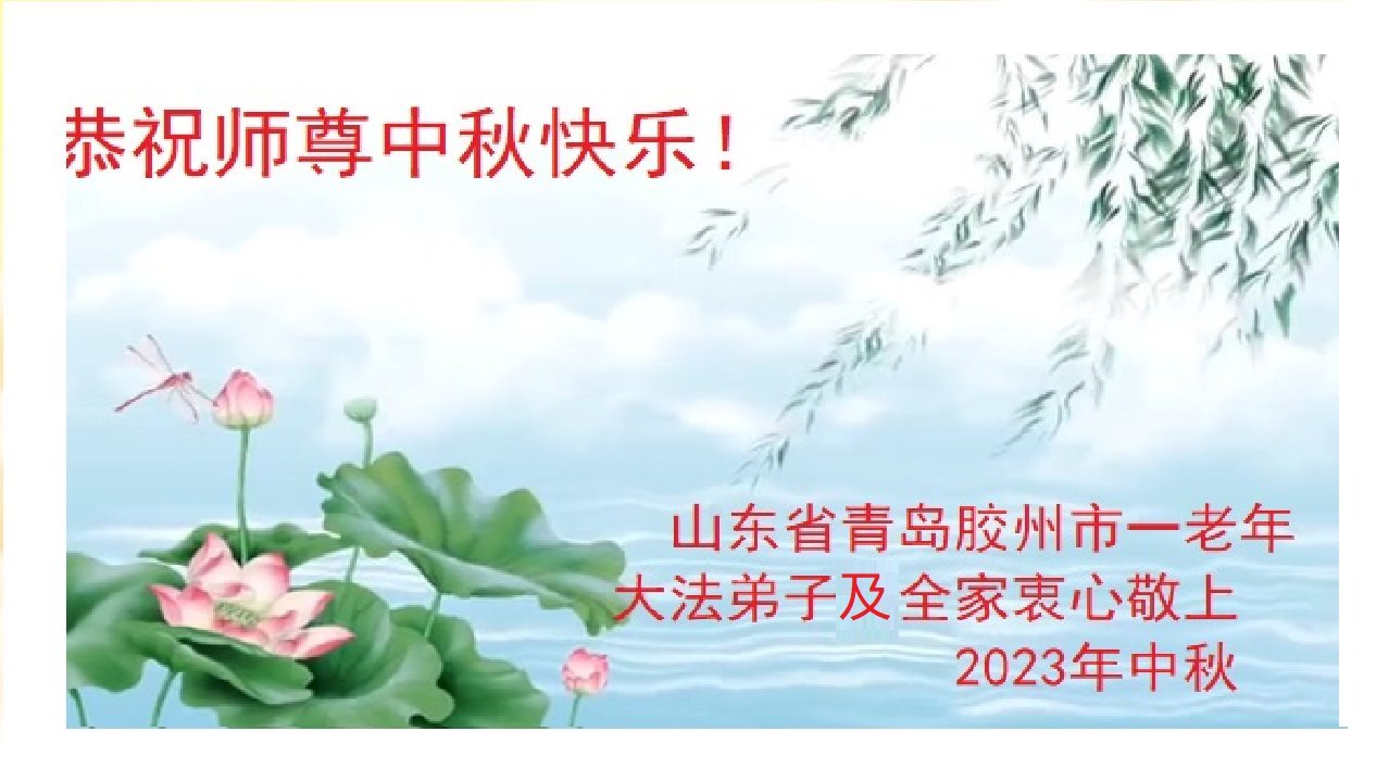恭祝慈悲伟大的师尊中秋节快乐! 师恩浩荡!感恩师尊为我们承受的一切,唯有时时向内找做真修弟子,努力精進,做好三件事。弟子们感恩师尊慈悲苦度。多少次的生命危险都是师父化险为夷!谢谢师父! 弟子叩拜师尊救命之恩! 2023年9月28日 山东省青岛胶州市一老年大法弟子及全家恭祝师尊中秋快乐!