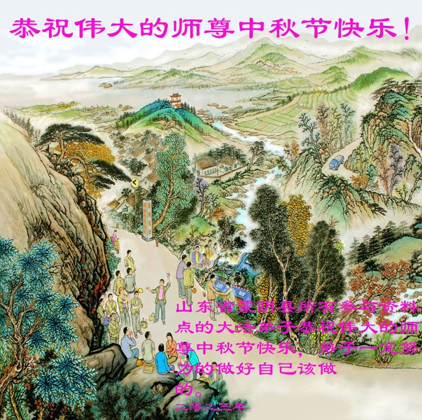 山东省潍坊市临朐县冶源镇一学法小组大法弟子恭祝师父中秋节快乐!