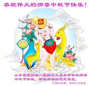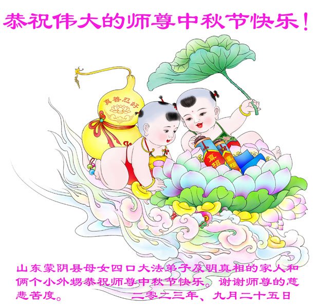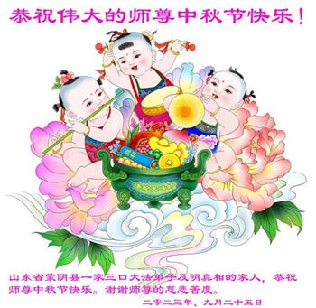 济南大法弟子叩拜师尊 山东省临沂市蒙阴县一名大法弟子及明真相家人恭祝师尊中秋节快乐!