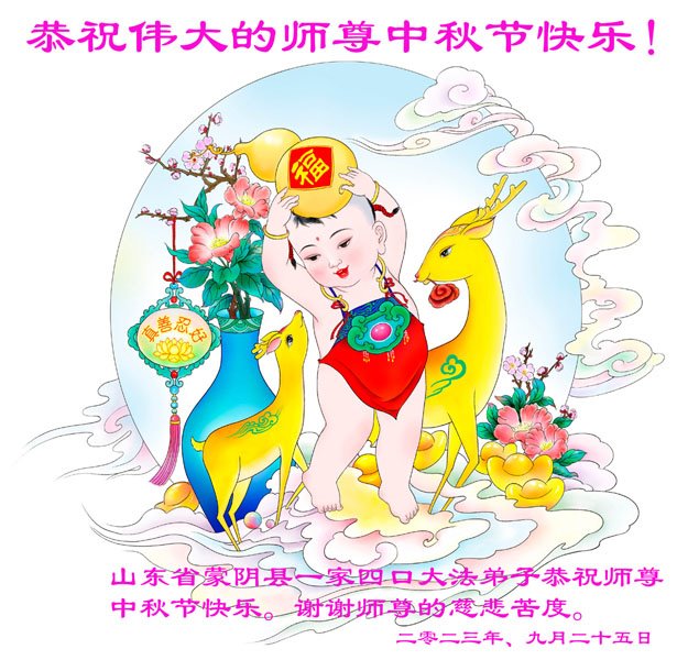 山东济南大法弟子一家恭祝慈悲伟大师尊中秋快乐! 大法弟子一家谨记师尊教诲,做好三件事,多救人,更加精進实修,跟师尊回家! 大法弟子一家叩拜师尊 二零二三年九月二十八日 山东济南大法弟子一家恭祝慈悲伟大的师尊中秋快乐!